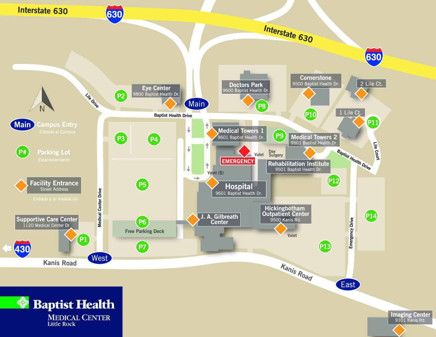Please use the designated parking. At Baptist Health Medical Center-Little Rock, look for the lot labeled P5. To view the parking map, click here.