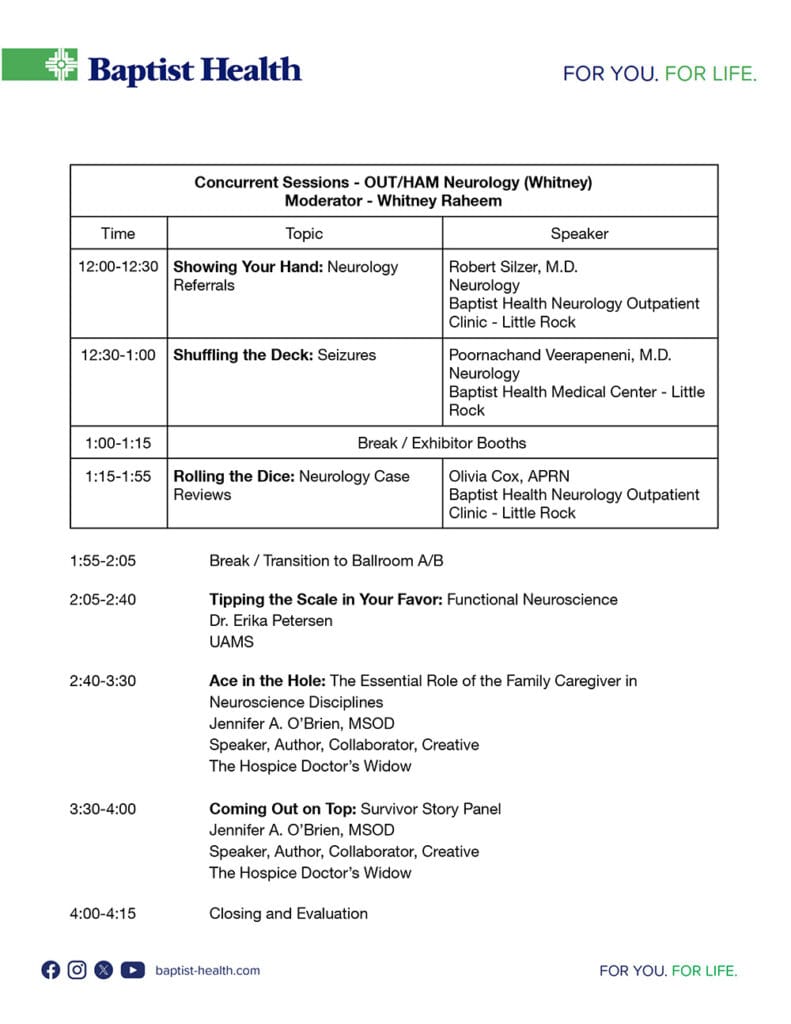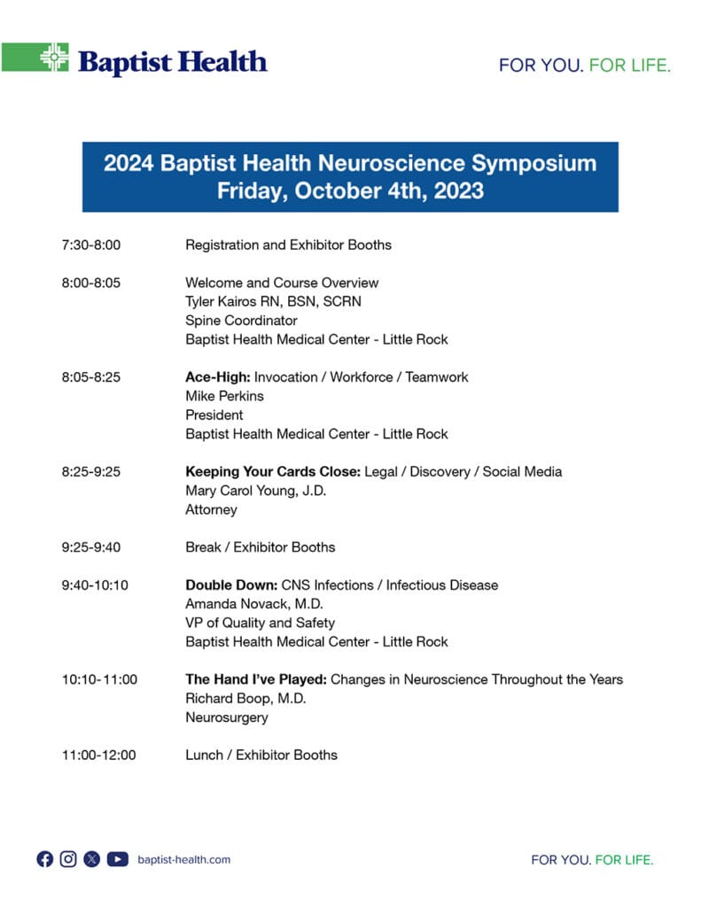 We look forward to seeing you at this wonderful event. For further information or questions, please email neurosymposium@baptist-health.com.